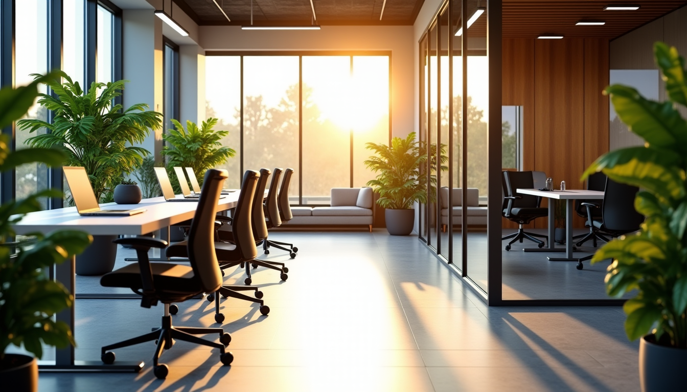 | Bureaux fermés | Bureau individuel spacieux, Chaise ergonomique, Armoire de rangement sécurisée | Étagères murales, Caissons mobiles, Lampes de bureau ajustables, Solutions d’isolation phonique (portes renforcées) |